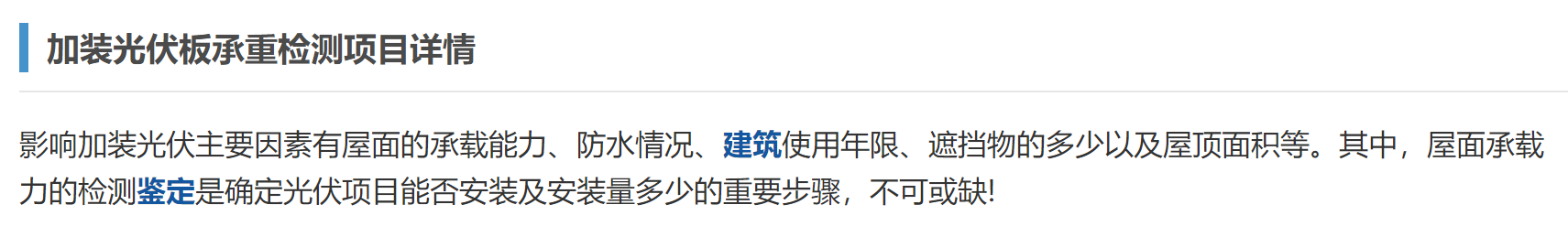 加装光伏板承重检测项目详情
