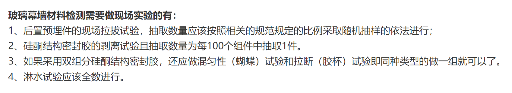 玻璃幕墙材料检测项目详情
